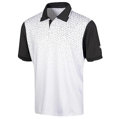 Island Green Men's CoolPass Stretch Quick Dry Breathable Polo Shirts, Silver/White, XS