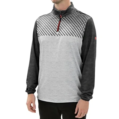 Island GREEN Men's Golf Breathable Long Sleeve Top Moisture Wicking Midlayer, Charcoal/Light Grey Marl, Large