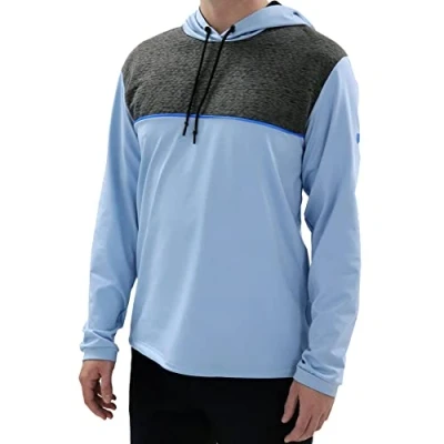 Island GREEN Men's Golf Breathable Long Sleeve Top Moisture Wicking Midlayer, Marine/Charcoal Marl/Black, Large
