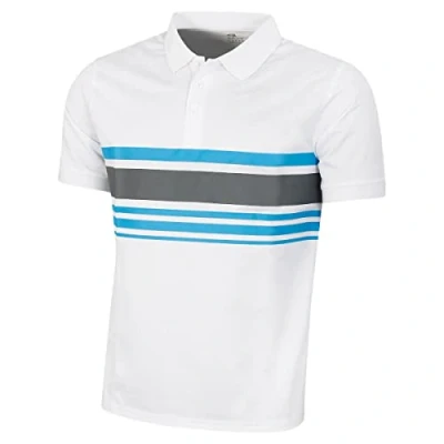 Island Green Men's Golf Chest Stripe Moisture Wicking Flexible Polo Shirt, White/Charcoal, 2XL