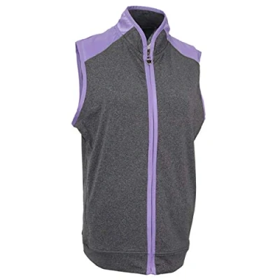 Island Green Women's Golf Ladies Contrast Detail Breathable Lightweight Crease Resistant Gilet Vest Top, Grey Marl/Lavender, 16