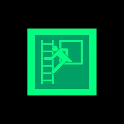 ISO Safety label Sign International Emergency window with escape ladder Symbol 200mm x 1.2mm Photoluminescent glow in the dark rigid plastic self adhesive backing