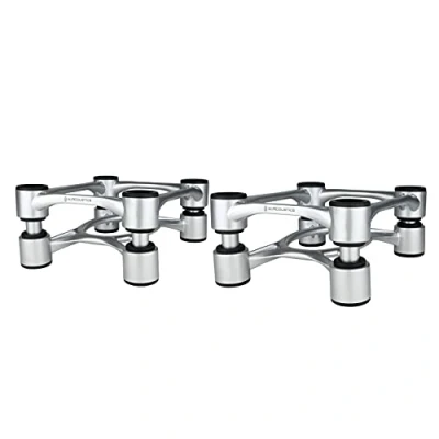 SCULPTED ALUMINUM ACOUSTIC ISOLATION STANDS: 6.1” (155mm) Wide x 7.5” (190mm) Depth x 3” (76mm) Height. 35 lbs weight capacity. Aluminum/Silver Color. Package includes 2 Stands. TILT ADJUSTMENT: Offering tilt adjustment of up to 6.5 degrees, the Aperta stands will help you to optimize the placement of your speakers and dial-in the perfect tilt angle to focus your tweeters to ear level. PATENTED ISOACOUSTICS ISOLATION: Tested at the National Research Council of Canada (NRC). The IsoAcoustics award winning design provides superior isolation performance. EXCITING THE SUPPORTING SURFACE: The isolators manage the energy of the speaker to reduce vibrations resonating through the supporting surface to eliminate dissonant sounds in the listening area. REDUCES INTERNAL REFLECTIONS: IsoAcoustics isolator reduces internal reflections to eliminate smear. The result is an improved stereo image of natural spatial sound.
