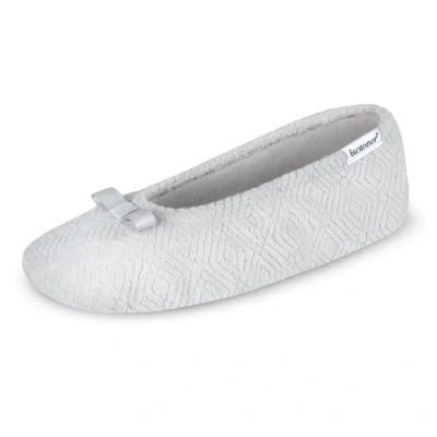 Isotoner Women’s Chevron Microterry Ballerina Slippers, Light Grey, Small/5 6 M US