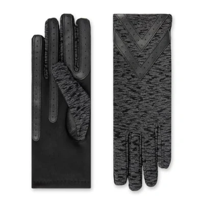 isotoner Women's Spandex Touchscreen Cold Weather Gloves with Warm Fleece Lining and Chevron Details, Black Textured Smartdri, S M