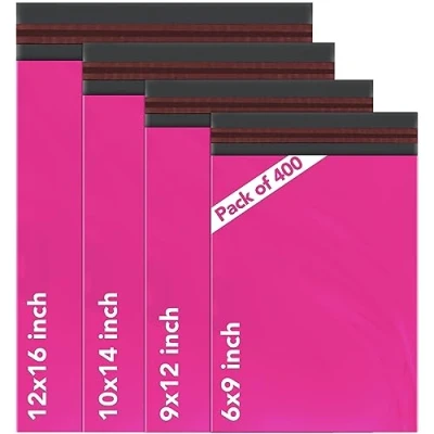ISOUL 4 Size 200 Mixed Hot Pink Mailing Bags, Self Seal Strong Waterproof Poly Plastic Envelopes for Parcels, Packaging, Small, Medium, Large Mail, Shipping Delivery Bags