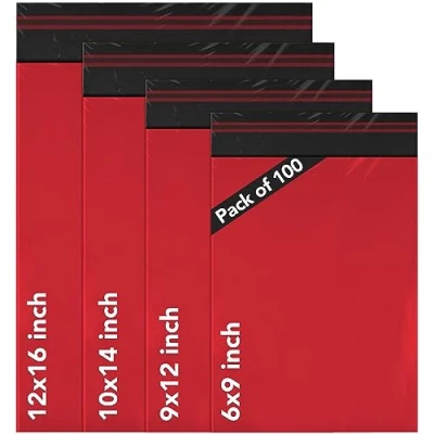 ISOUL 60 Mixed Size Grey Mailing Bags, Self Seal 4 Strong Waterproof Poly Plastic Envelopes for Parcels, Packaging, Small, Medium, Large Mail, Shipping Delivery Bags (Red, 100)