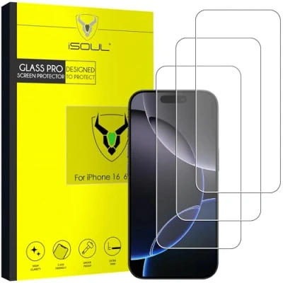 iSOUL Screen Protector for iPhone 16 Pro Max 6.3 Inch Tempered Glass Film Full Coverage, Case Friendly Clear 3 Pack
