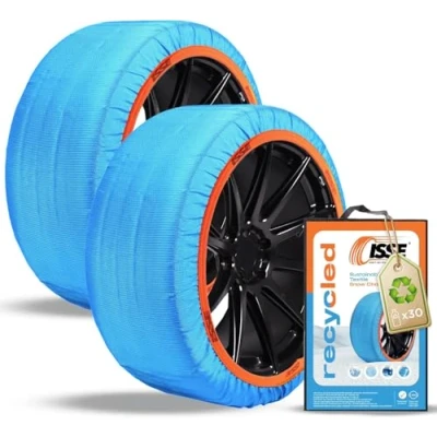 ISSE Recycled Snow Chains for Cars T-54 | Recycled Fabric Snow Chains - Everyday Car Chains for Snow and Ice - Kit of 2 Chains