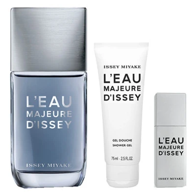 A masculine strength combined with a breath of the ocean, L'Eau Majeure D'Issey features an invigorating marine fragrance that opens with crisp notes of bergamot and grapefruit. A wave of sea notes gives the fragrance an aquatic heart and a base of woods and cashmeran gives depth. Set Includes: 100ml EDT Spray + 75ml Shower gel + 20ml EDT Spray
