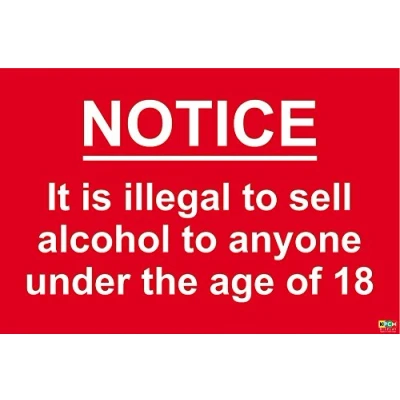 It is Illegal to Sell Alcohol Anyone Under 18 Sign Self Adhesive Vinyl 300 x 200mm