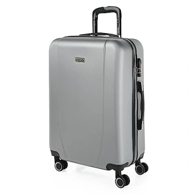 ITACA Rigid Cabin Suitcase Travel Small with Wheels ABS Hand Luggage Case Telescopic Handle Lightweight Carry on TSA Combination Lock Luggage, Silver