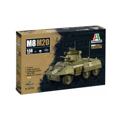 Italeri 25759 1:56 M8/M20 Greyhound Model Building Kit, Standing Building, Crafts, Hobby, Gluing, Plastic Detailed, Unpainted