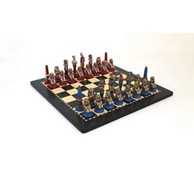 Chess made of metal, hand painted Set consists of 2 teams of 16 pieces each (king, queen, 2 bishops, 2 horses, 2 towers, 8 pedestrians) + chessboard King: Height 9.5cm Base Diameter 3cm Wooden chess board Chessboard: 40 cm x 40 cm x ht.1 cm square: 4 x 4 cm, Manufacturer: Italfama