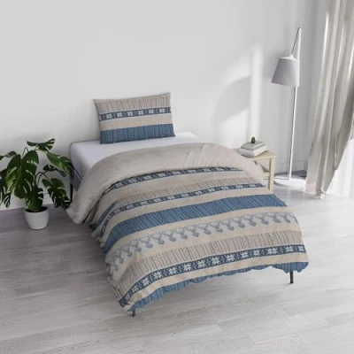 Athena duvet cover set with printed duvet cover and pillowcases Fabric: 100% Cotton Made in Italy and available in many designs. Article with great attention to detail Single: Bag 150 x 200 cm + double flap to fix under the 50 cm mattress. 1 pillowcase 52 x 82 cm with internal flap Machine wash at 30 degrees, do not bleach or dry clean. Tumble dry at a low temperature and iron on a medium temperature