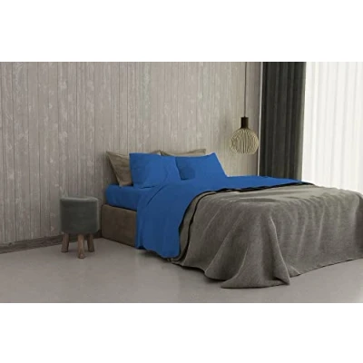 Italian Bed Linen Double Bed, Linen, Blue, 240 x 300 cm