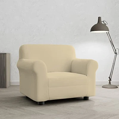 Italian Bed Linen Elastic Sofa Cover “Piu Bello, 97% Polyester + 3% Elastometer, Cream, 1 Place