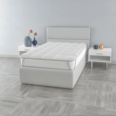 Fancy quilted and padded topper provided with four strong laces for better fixing it to the mattress. Availabile in three different sizes: SINGLE 80x195cm SMALL DOUBLE 120x195cm 2 PLACES 160x195cm. Padding: 300grams; Quilting is resistant to scuffs, for this reason this article is perfect to protect new mattresses preventing their occurrance; The surface has also been subjected to anti-pilling treatment. This product is also provided witrh a particular bellow. High quality product; No ironing needed
