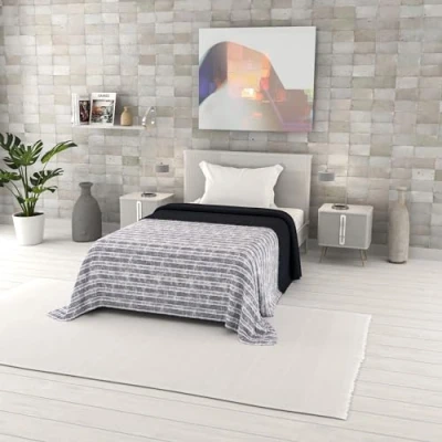 Italian Bed Linen Fantasy Printed Summer Quilt, Polyester Filling, Jeans Stripes, 220 x 270 cm