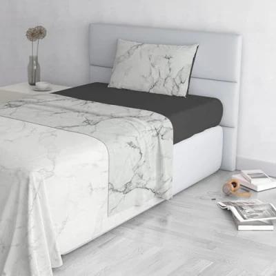 Italian Bed Linen Fashion Bedding Set Made in Italy, Microfiber, Marble, Queen Size