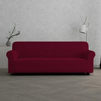 Italian Bed Linen “ Leslie Sofa Cover, 95% Polyester + 5% Elastometer, Bordeaux, 3 Places
