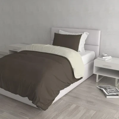 Italian Bed Linen Natural Color Duvet Cover Set with Doubleface Solid Colour Bag Sheet and Pillowcase, 100% Cotton, Brown/Cream, single