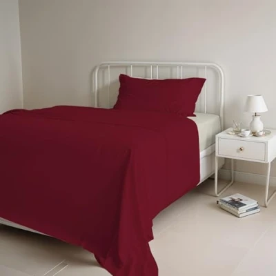 Italian Bed Linen “ Natural Color Set, Cotton, Burgundy/Cream, Small Double