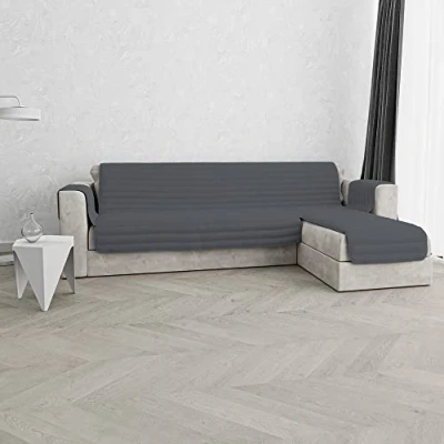 Italian Bed Linen Pinsonic TRENDY Quilted Sofa Cover with Reversible Peninsula, Dark Grey, 240 cm