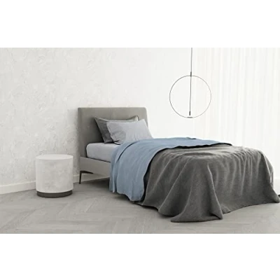 Trend Chic bedding set with fitted sheet and pillowcases in grey and coloured top sheet Single size: top sheet 150 x 300 cm, bottom sheet 90 x 200 cm with 25 cm elastic corner and 1 pillowcase 50 x 80 cm with internal flap Designed and manufactured entirely in Italy. Material: 100% Cotton Care instructions: machine wash at 30 degrees, do not bleach and do not dry clean. Iron the product at medium temperature and tumble dry allowed on low heat Oeko-tex certification guarantees absolute respect for the environment and the total absence of harmful substances throughout the entire production process