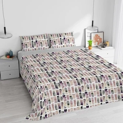 Watercolour bed linen set made from 100% cotton with digital print. Item with top sheet and pillowcase Double bed: top sheet 255 x 300 cm + 2 pillowcases 52 x 82 cm with inner flap Made exclusively in Italy A high quality product. For everyday use Machine wash at 30 degrees, do not bleach, iron at medium temperature, do not dry clean, allow tumble dry at low temperatures