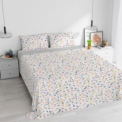 Watercolour bed linen set made from 100% cotton with digital print. Item with top sheet and pillowcase Double bed: top sheet 255 x 300 cm + 2 pillowcases 52 x 82 cm with inner flap Made exclusively in Italy A high quality product. For everyday use Machine wash at 30 degrees, do not bleach, iron at medium temperature, do not dry clean, allow tumble dry at low temperatures