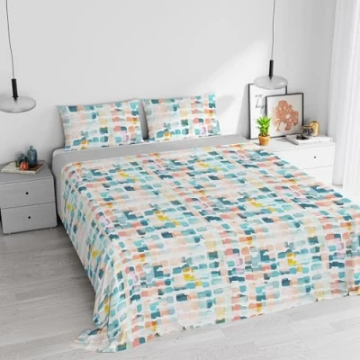 Watercolour bed linen set made from 100% cotton with digital print. Item with top sheet and pillowcase Double bed: top sheet 255 x 300 cm + 2 pillowcases 52 x 82 cm with inner flap Made exclusively in Italy A high quality product. For everyday use Machine wash at 30 degrees, do not bleach, iron at medium temperature, do not dry clean, allow tumble dry at low temperatures
