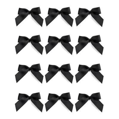 Italian Options Grosgrain Ribbon Bows Self Adhesive 12 Piece Pack, 5 cm Bow Width, Black