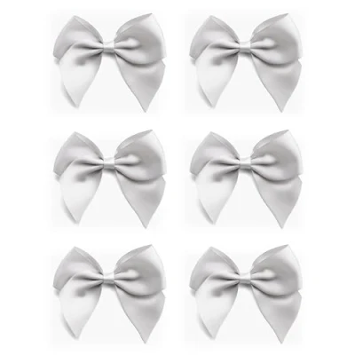 Italian Options Large Satin Ribbon Bows Self Adhesive 6 Piece Pack, 10 cm Bow Width, Silver