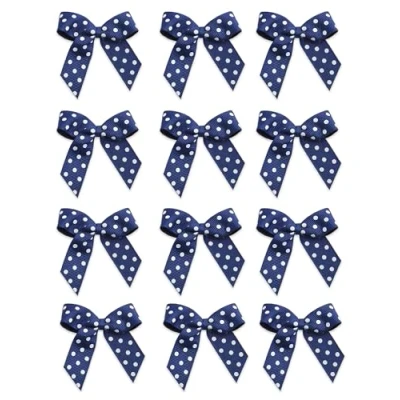 Italian Options Polka Dot Grosgrain Ribbon Bows Self Adhesive 12 Piece Pack, 5 cm Bow Width, Navy