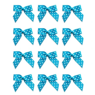 Italian Options Polka Dot Grosgrain Ribbon Bows Self Adhesive 12 Piece Pack, 5 cm Bow Width, Turquoise