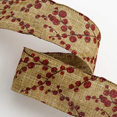 Italian Options Red Lurex Berry Spray Wired Edge Ribbon 38mm x 10M Hessian