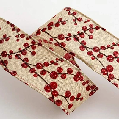 Italian Options Red Lurex Berry Spray Wired Edge Ribbon 38mm x 10M Natural