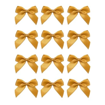Italian Options Satin Ribbon Bows Self Adhesive 12 Piece Pack, 5 cm Bow Width, Antique Gold
