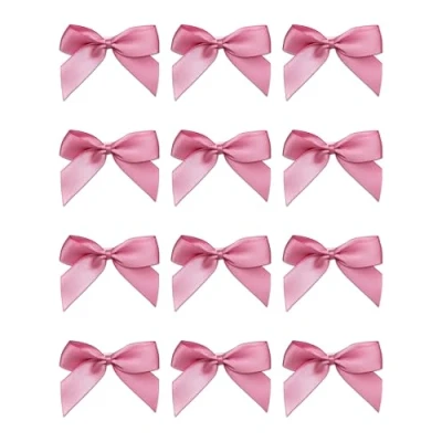 Italian Options Satin Ribbon Bows Self Adhesive 12 Piece Pack, 5 cm Bow Width, Antique Pink