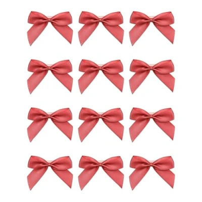 Italian Options Satin Ribbon Bows Self Adhesive 12 Piece Pack, 5 cm Bow Width, Coral