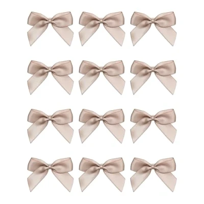 Italian Options Satin Ribbon Bows Self Adhesive 12 Piece Pack, 5 cm Bow Width, Taupe