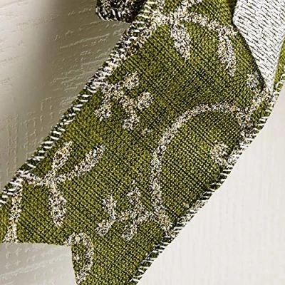 Italian Options Silver Lurex Scroll Hessian Ribbon 38mm x10M Green