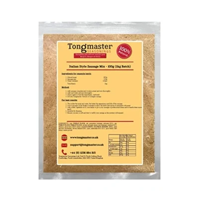 A rich tomato based sausage seasoning with a blend of Italian style herbs. Use 100g mix per 800g minced meat, includes rusk. This pack will make 1kg of sausages. Use with beef, chicken, pork, lamb or alternative! Simply add this seasoning to minced meat & water. Fill the sausage meat into collagen or natural casings using vegetable oil for a professional sheen. The colder the meat and water, the better the appearance and life of the sausage. Leave sausage meat in the fridge overnight to allow the herbs and spices to marinade with the meat. Fill using a sausage stuffer machine.