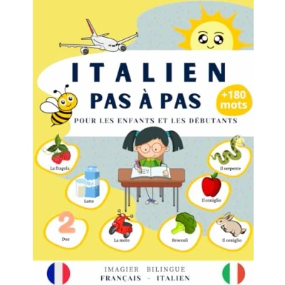 Italien pas à pour les enfants et débutants: Imagier Bilingue Français avec +180 mots faciles retenir, livre d'apprentissage ... débutant parler comprendre L’italien