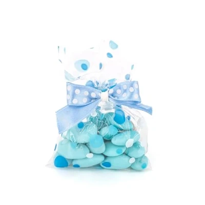 Suitable for food contact, ideal for packaging products such as confetti, biscuits, sweets, candies, foods in general but also medium-small gifts Very practical and colourful, ideal for events such as weddings, birthdays, parties and ceremonies Plastic material (polypropylene) thickness 30 microns (my) transparent and durable, 100% made in Italy Dimensions: 10 x 20 cm (10 cm base and 20 cm high) 50 pieces per pack, gift ribbon not included, dark green and light bubbles