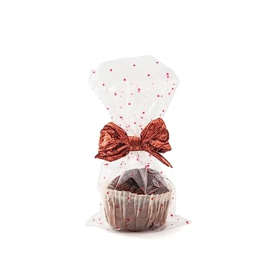 Italpak Transparent Envelopes, Bags for Food Polka Dots, Biscuit Sachets, Confetti, 50 Pieces (Red, 10 x 20 cm)