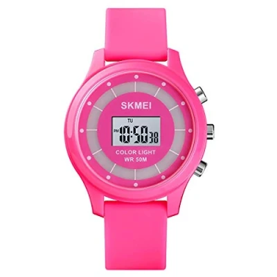 AmazonSKMEI Kids Boys Girls Children Digital Watch Easy Stopwatch Alarm Date Flashing Lights Pink