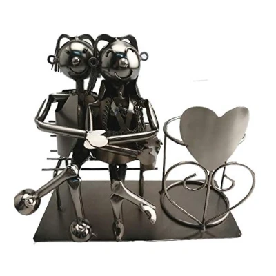 ito electronics Lovers on Bench Bottle Holder Sitting Wedding Gift Heart Wine Stand 24 x 11 21 cm