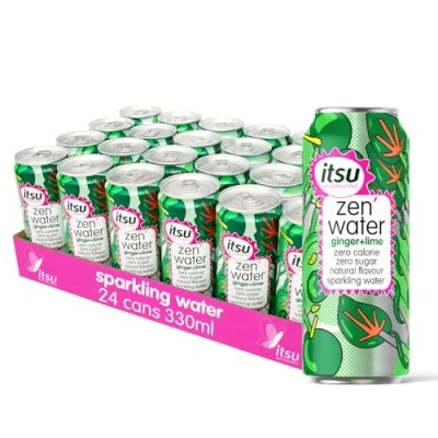 itsu Ginger + Lime Zen'Water Naturally Flavoured Sparkling Water 330ml (Pack of 24) Zero Calories, Sugar 24 x Pack